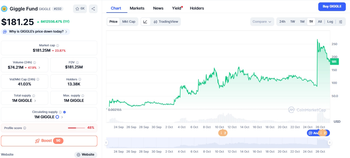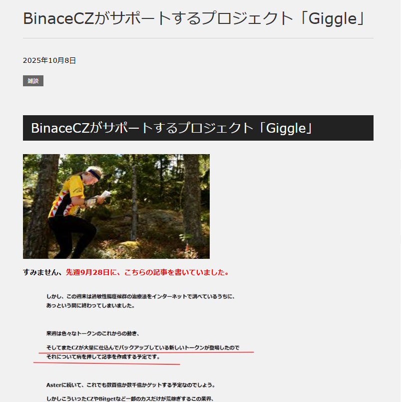 10月8日に記事にしていたBinanceのCZがサポートするGiggleが暴騰し海外で話題になっています。