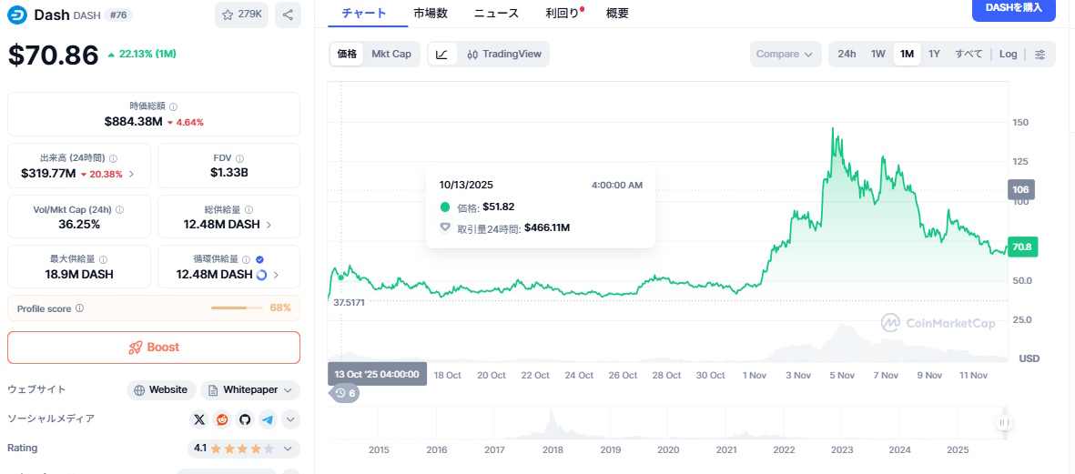 そうなると、DASHはどうなんだろと調べたら、11月になってから一時3倍以上になっていました。