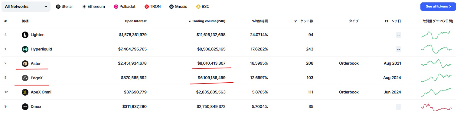 現在のedgeXの取引ボリュームはAsterの次点ですが、上場した時に保守的に見て、