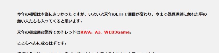 上半期より本格的なアルトコインバブルが起こると思っていて、来年を非常に楽しみにしています。