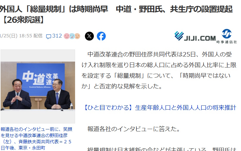 しかも日本にガンガン外国人を入れていく方針で、野田代表は多文化共生庁の設置まで決め始めています。